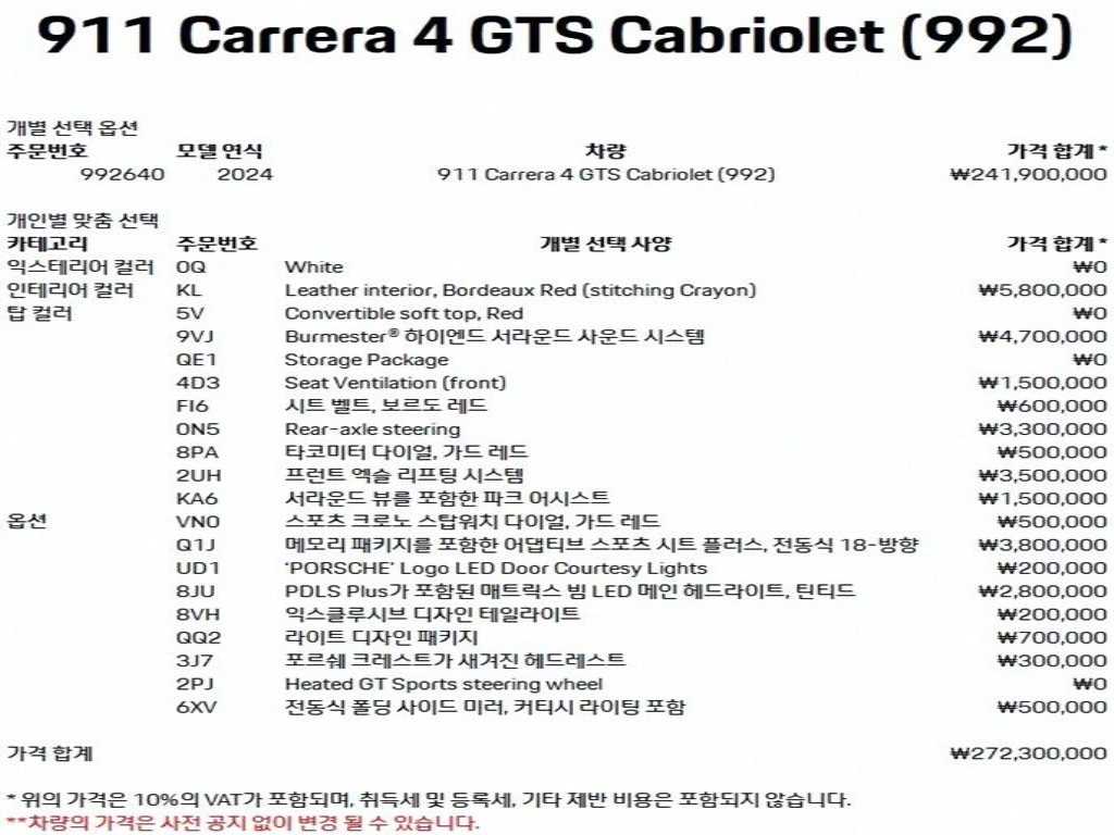 포르쉐 911(992) 카레라 4 GTS 카브리올레