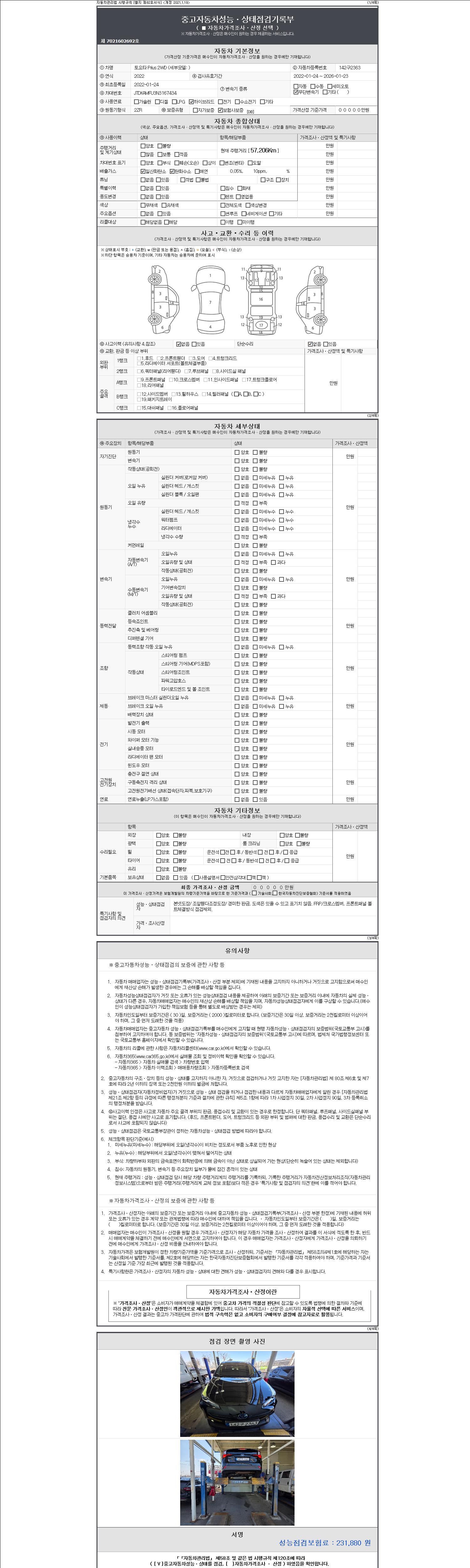 | 주행거리 | 57,195 km | 차량번호 | 142구2363 | 사고유무 | 성능기록부 참조 | 제시번호 | 제 2147483647 호 |