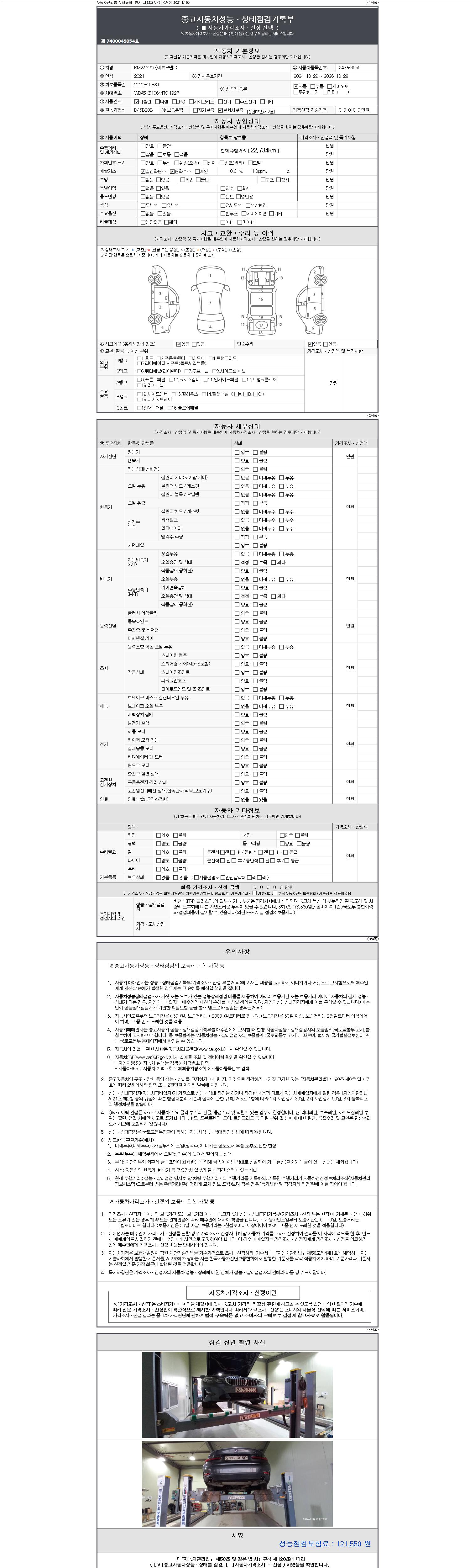 -중고자동차 매매업자를 통해 차량을 구입하실 경우 반드시 "중고자동차 성능, 상태점검 기록부"를 교뷰 받으셔야 하며, 매매업자는 반드시 의무 교부 하여야 압니다.