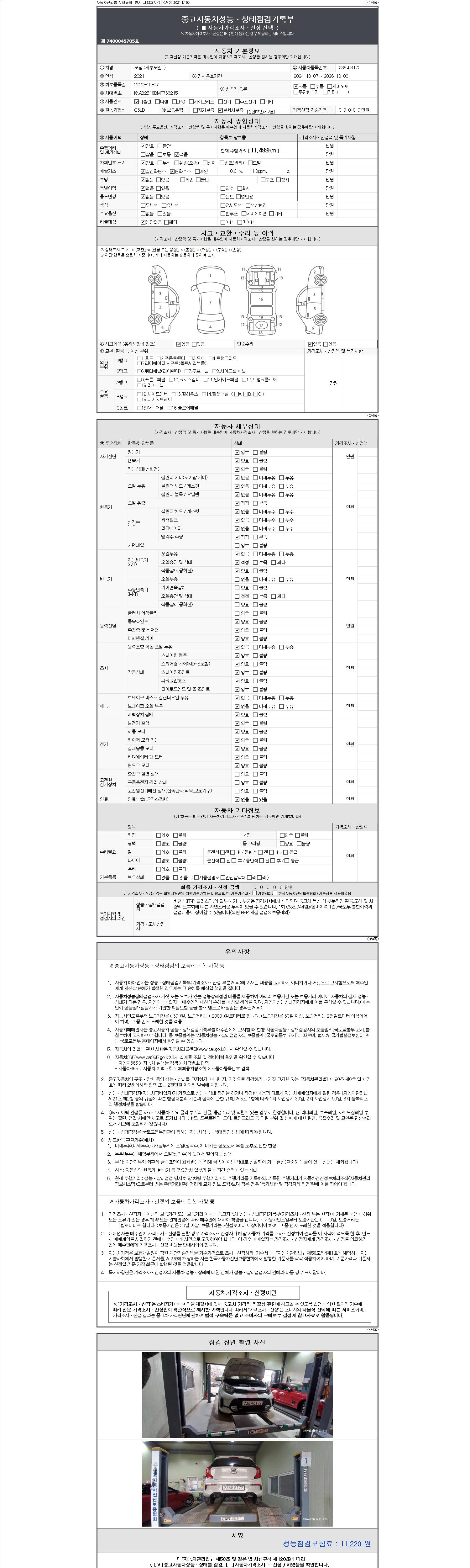 -중고자동차 매매업자를 통해 차량을 구입하실 경우 반드시 "중고자동차 성능, 상태점검 기록부"를 교뷰 받으셔야 하며, 매매업자는 반드시 의무 교부 하여야 압니다.