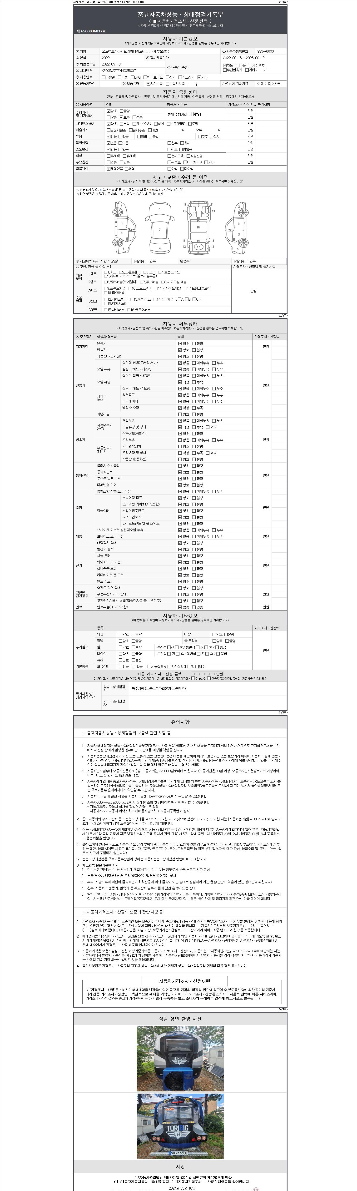 - 사고유무 : 성능기록부 참조