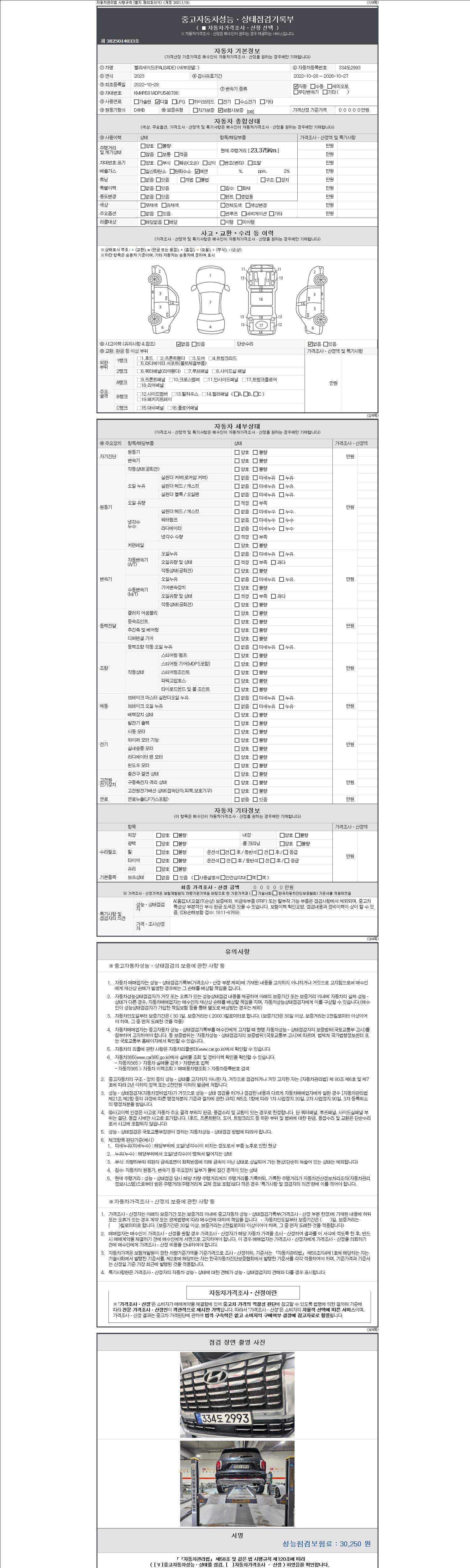 | 주행거리 | 23,375 km | 차량번호 | 334도2993 | 사고유무 | 성능기록부 참조 | 제시번호 | 제 2147483647 호 |