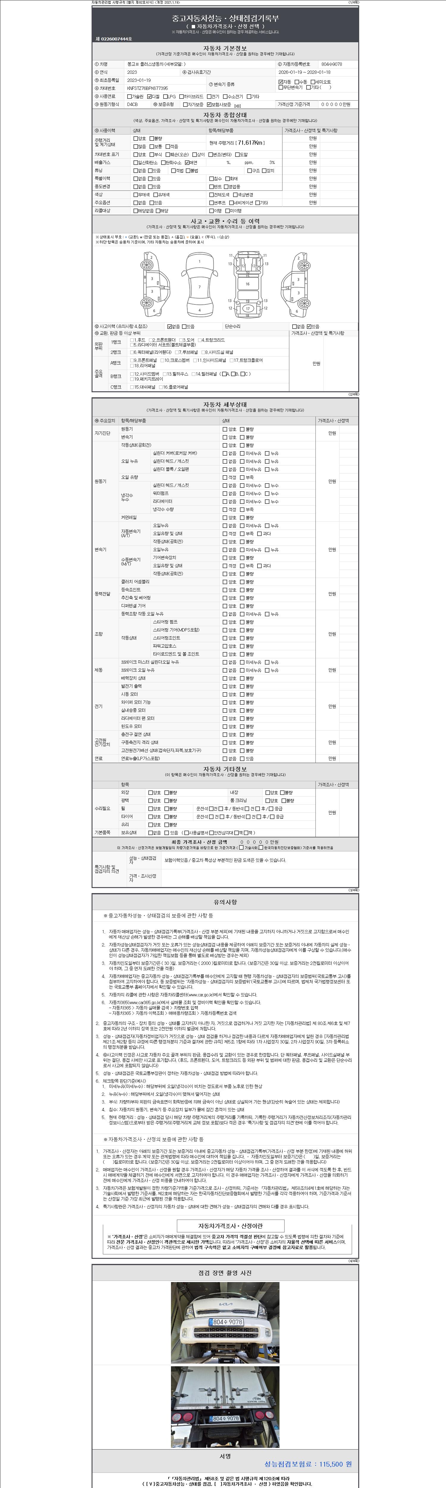 | 주행거리 | 71,617 km | 차량번호 | 804수9078 | 사고유무 | 성능기록부 참조 | 제시번호 | 제 2147483647 호 |