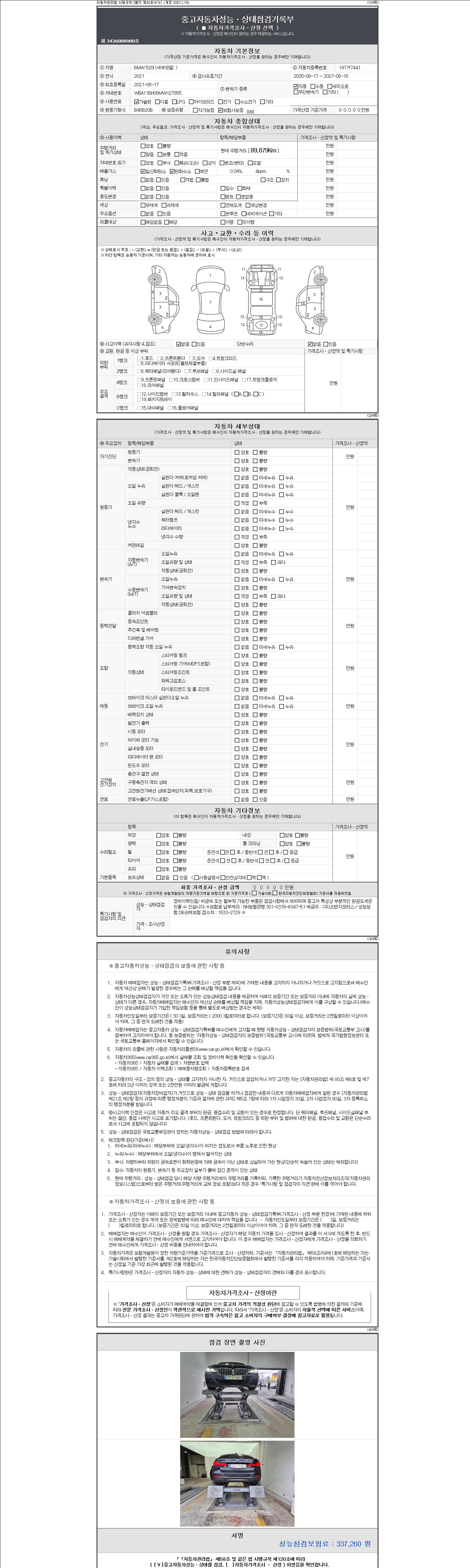 -중고자동차 매매업자를 통해 차량을 구입하실 경우 반드시 "중고자동차 성능, 상태점검 기록부"를 교뷰 받으셔야 하며, 매매업자는 반드시 의무 교부 하여야 압니다.