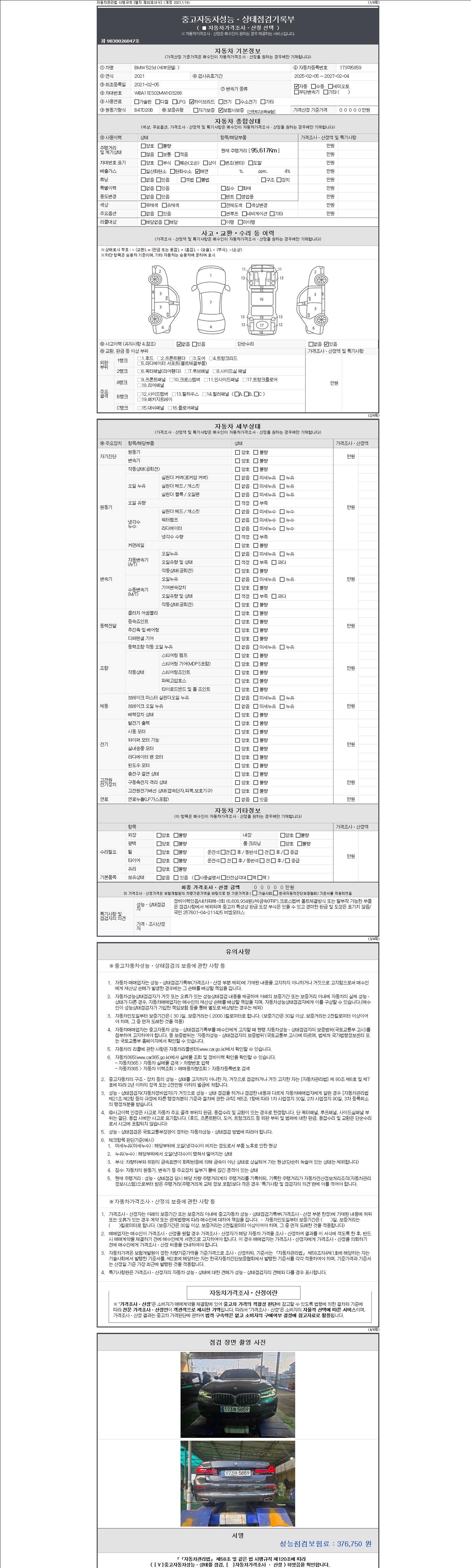 | 주행거리 | 95,617 km | 차량번호 | 173마5859 |