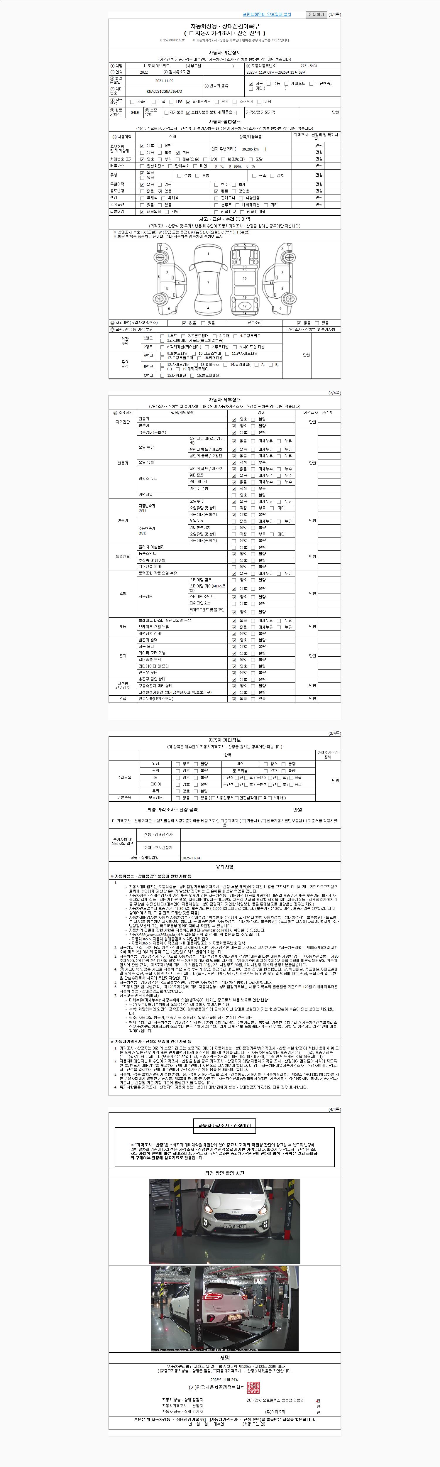 | 사고유무 | 성능기록부 참조 | 제시번호 | 제 2025160072 호 |