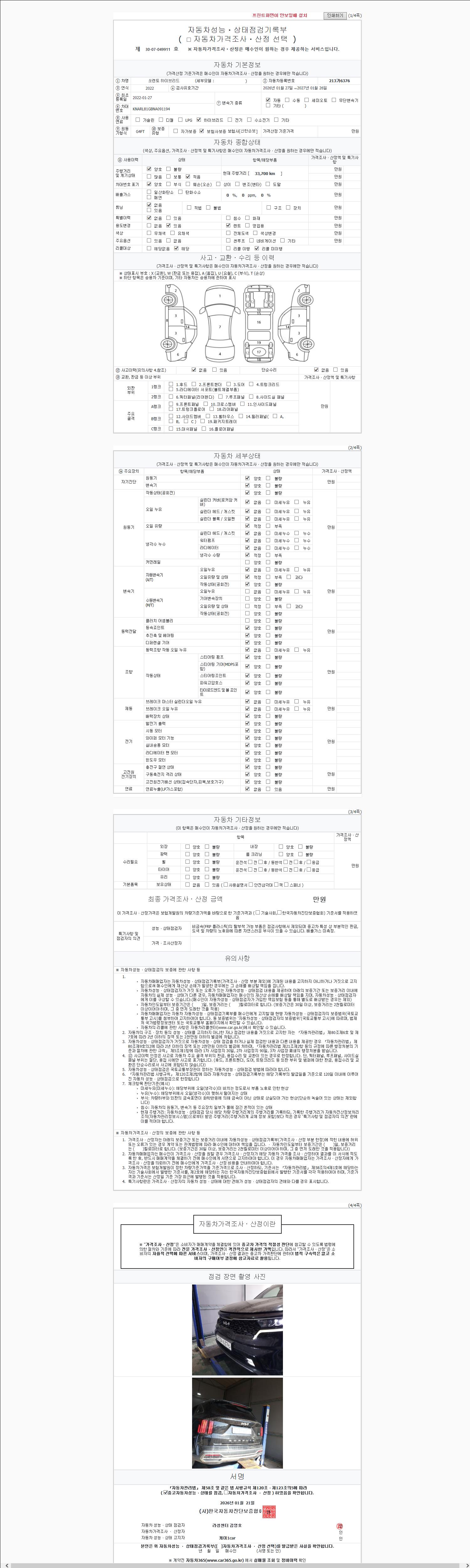 2. 차량 등록증이나 성능점검지 등을 상담자에게 요청및 확인하시고 사전에 미리 점검 하시기를 권유드립니다.