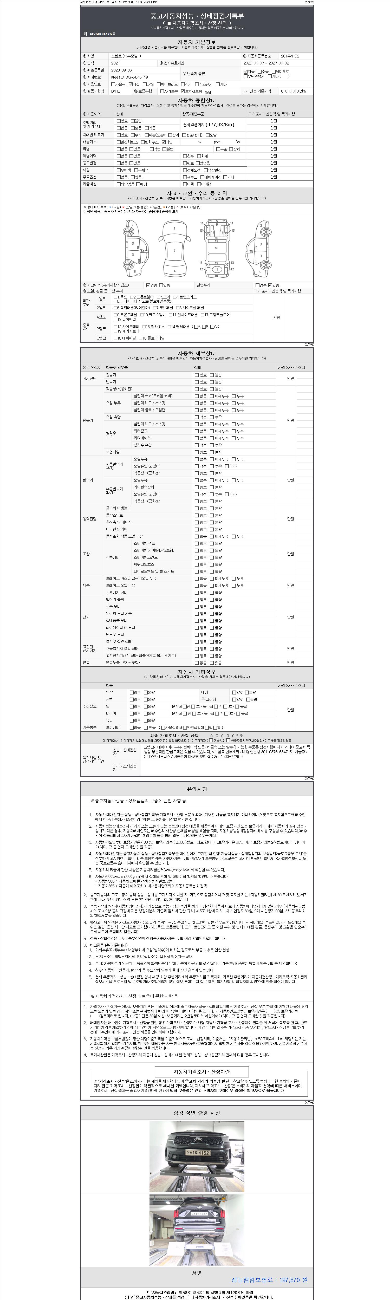 2. 차량 등록증이나 성능점검지 등을 상담자에게 요청및 확인하시고 사전에 미리 점검 하시기를 권유드립니다.
