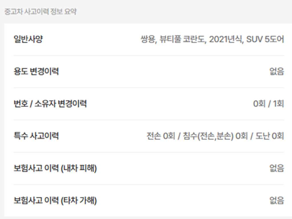 | 사고유무 | ----- | 무사고 |