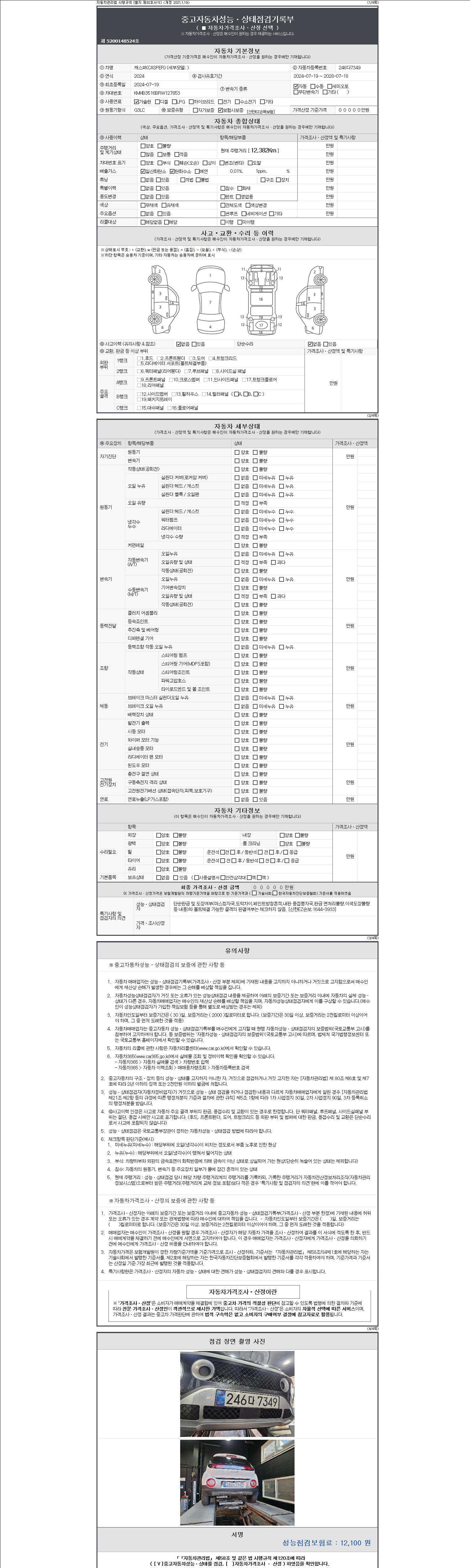 | 주행거리 | 12,382 km | 차량번호 | 246다7349 | 사고유무 | 성능기록부 참조 | 제시번호 | 제 2147483647 호 |