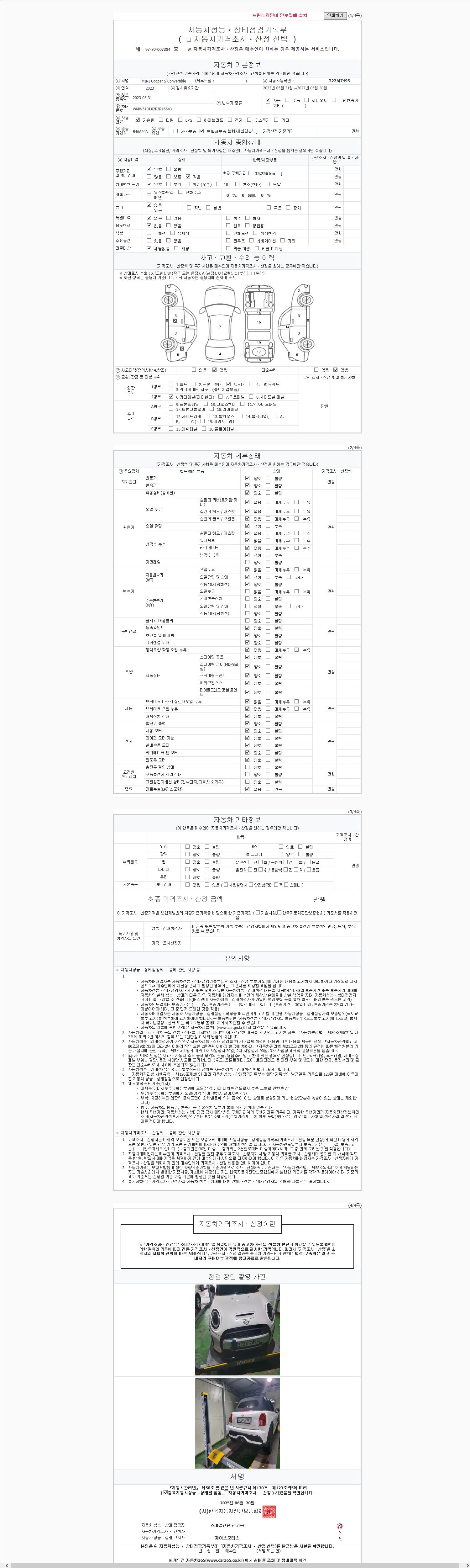 - 사고유무 : 성능기록부 참조